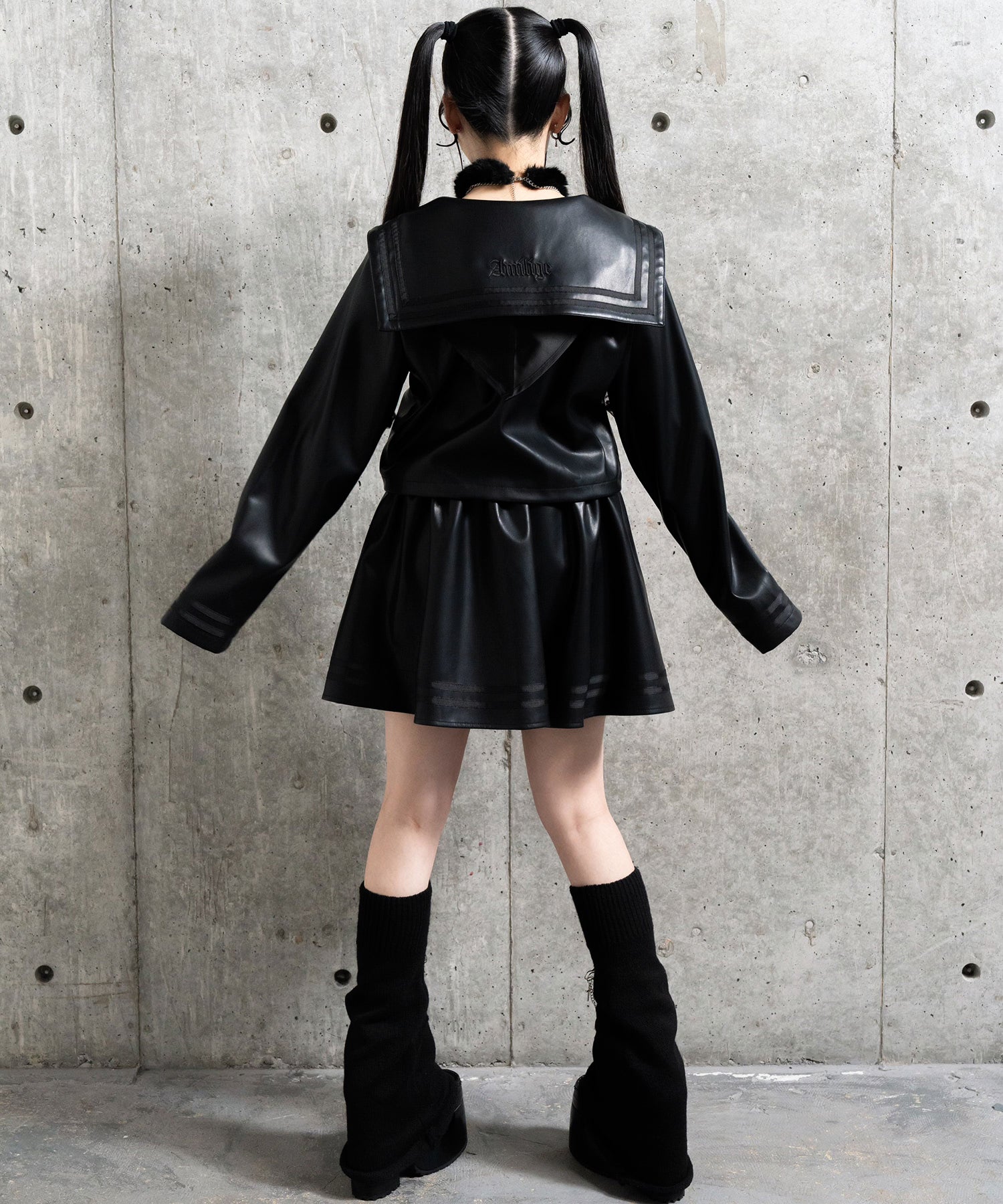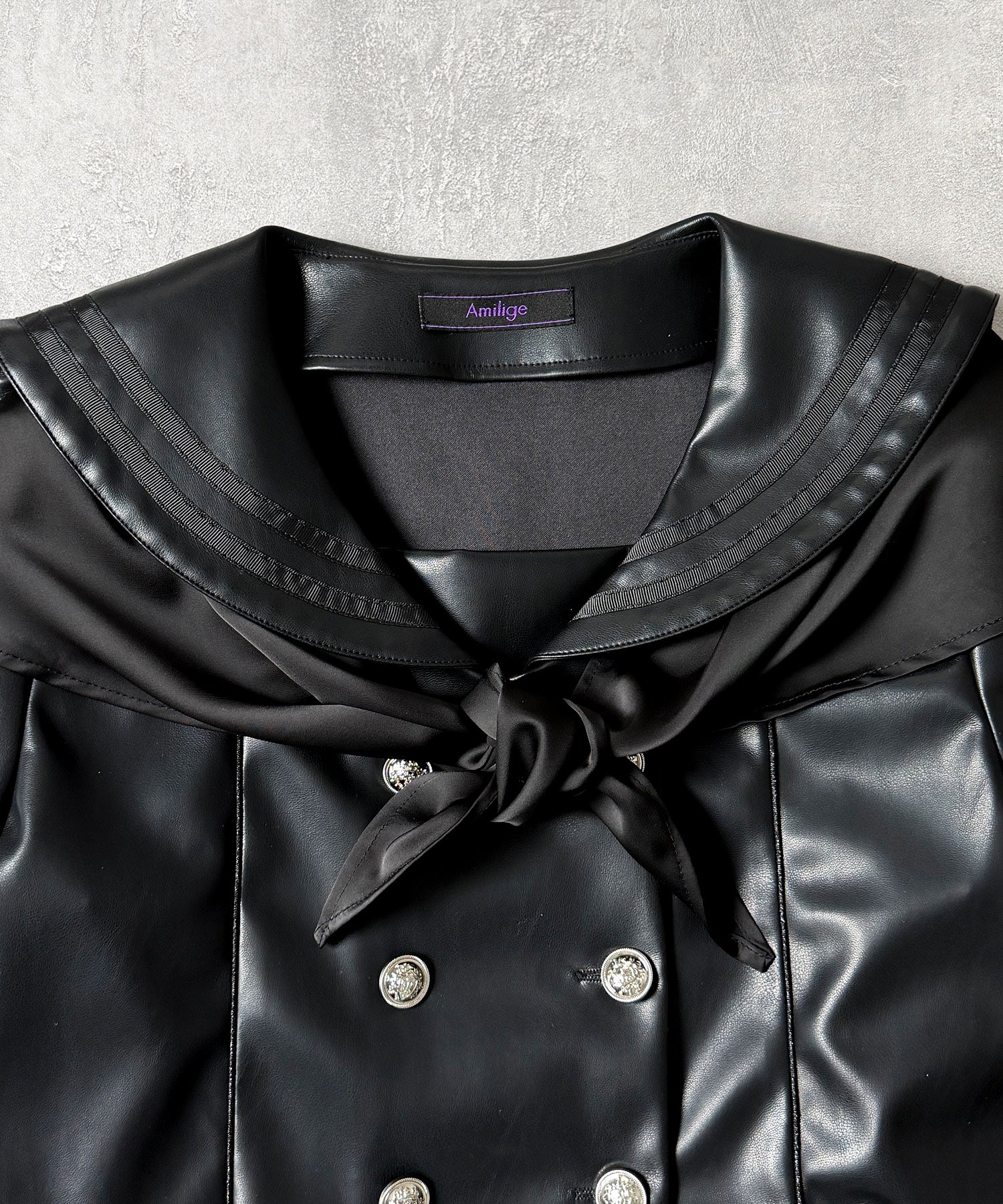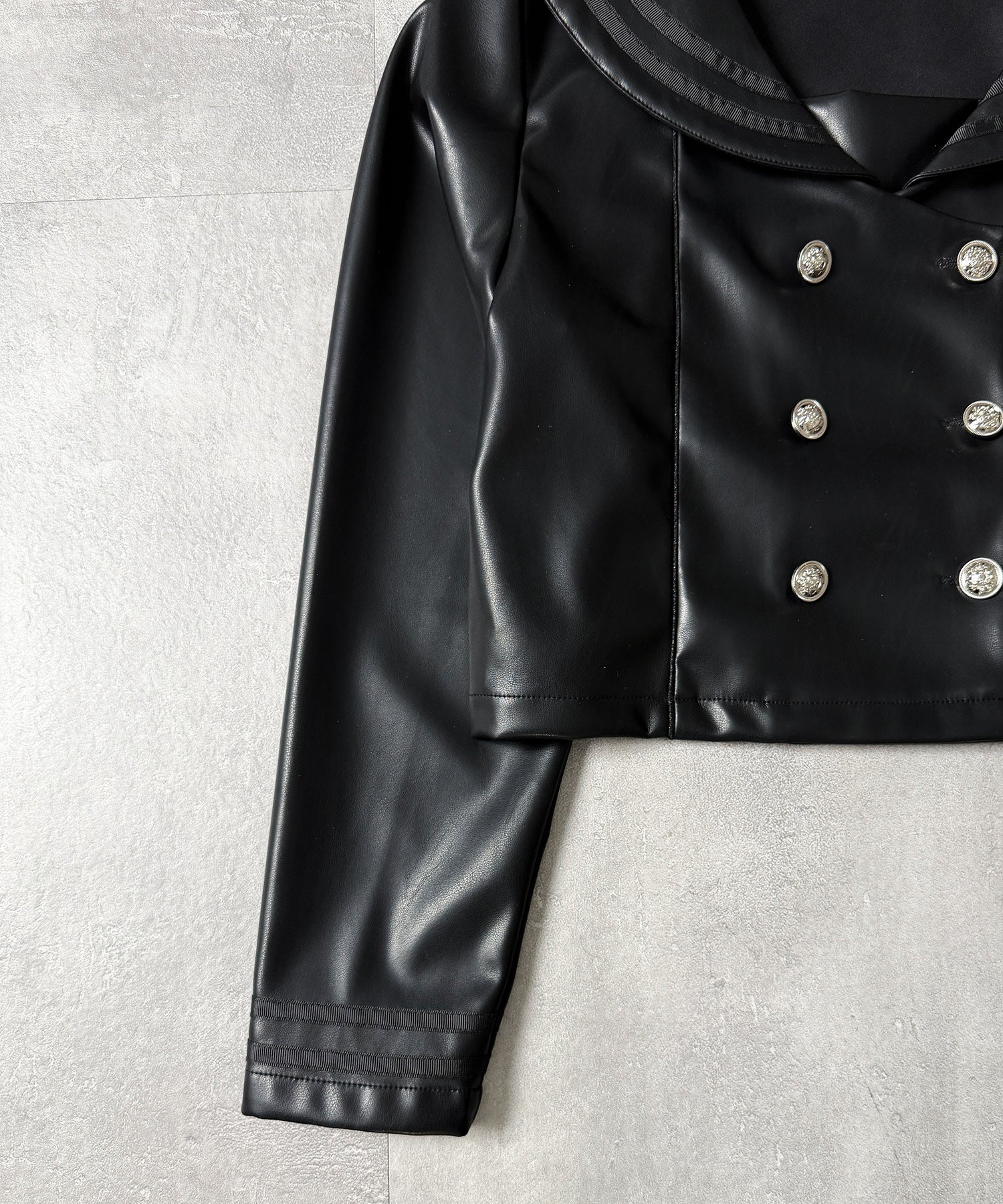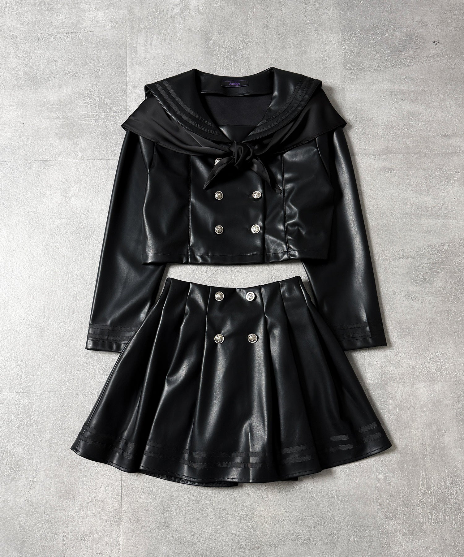 大人気のセーラーカラーセットアップがPUレザーの生地で登場。
