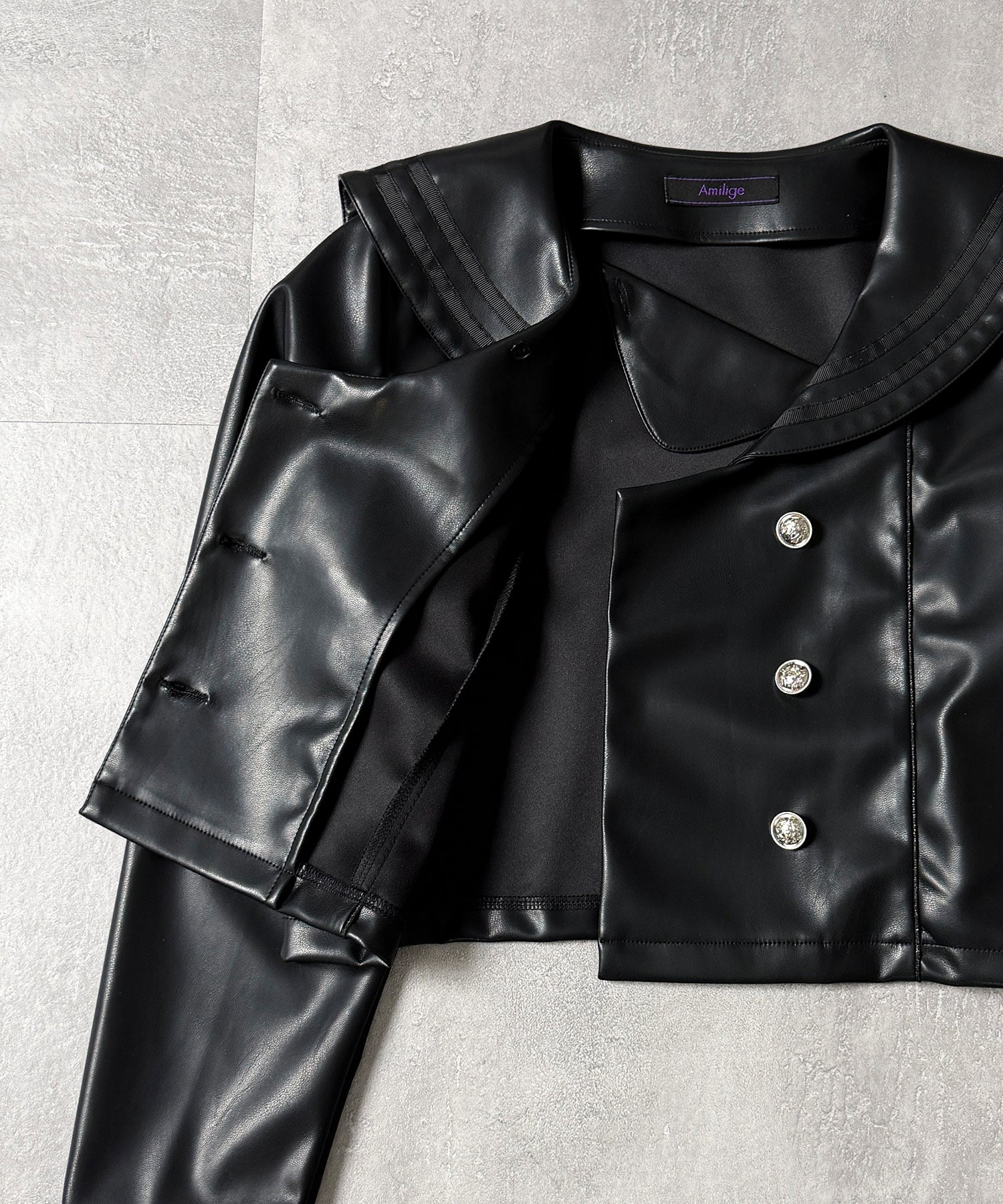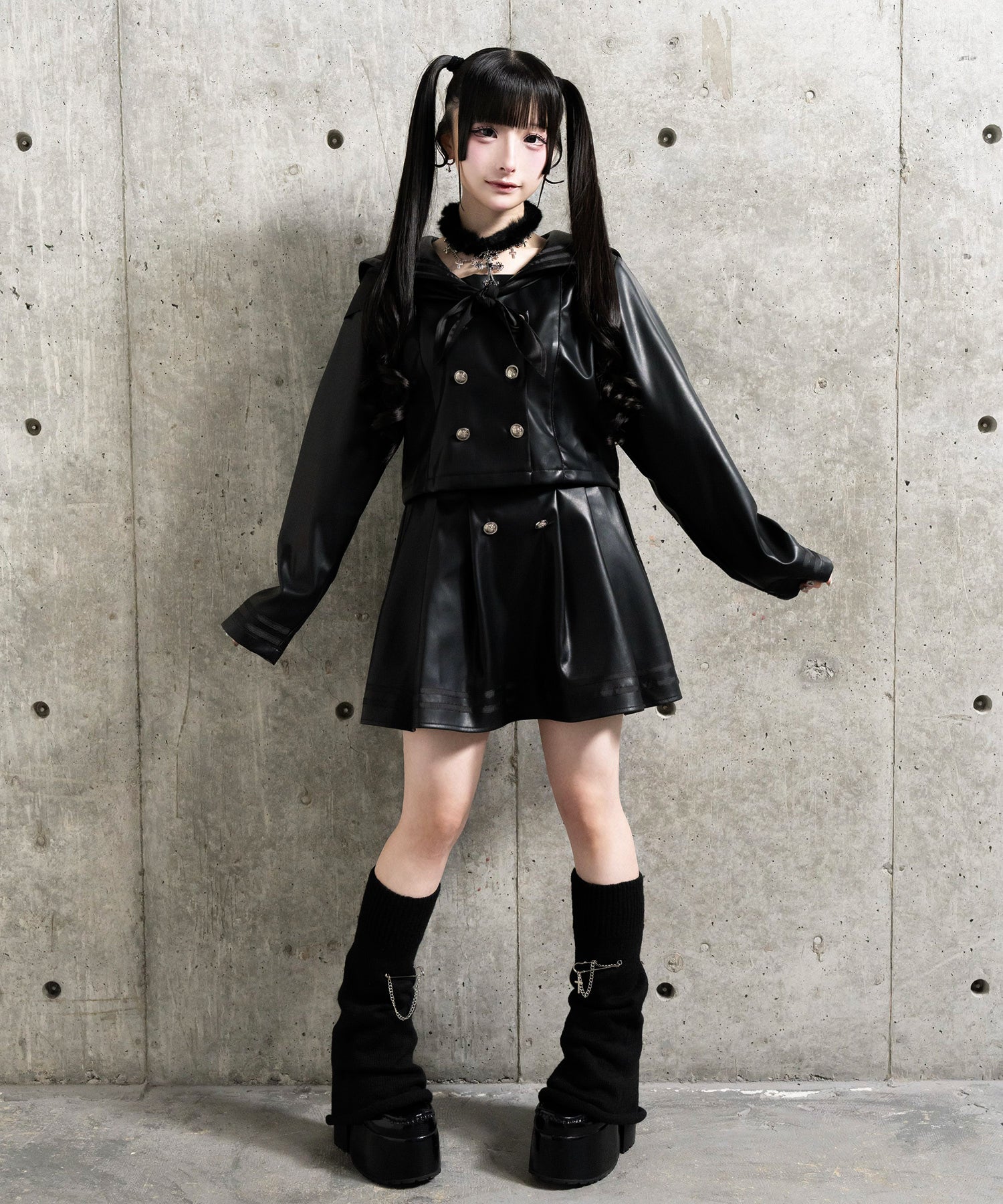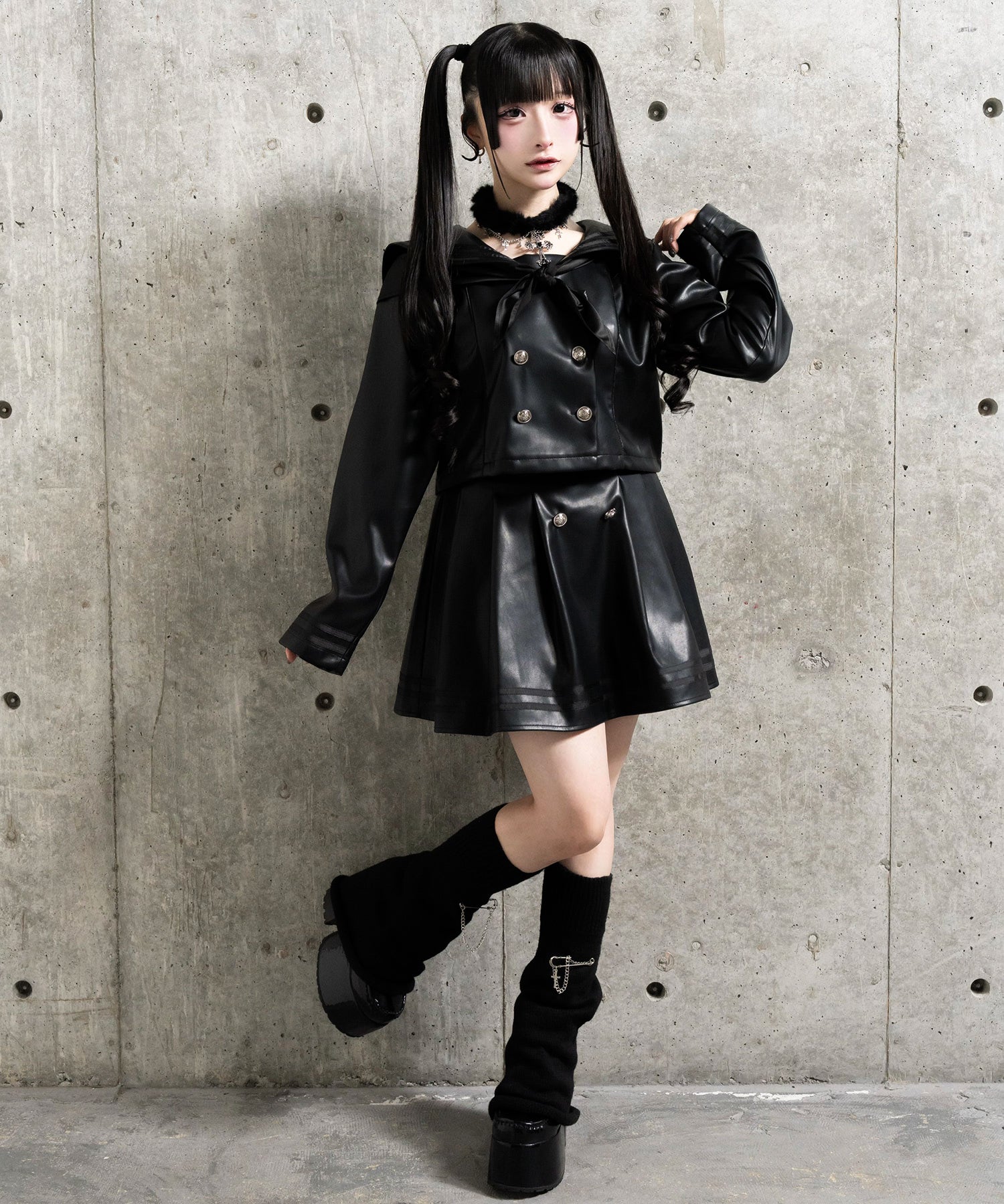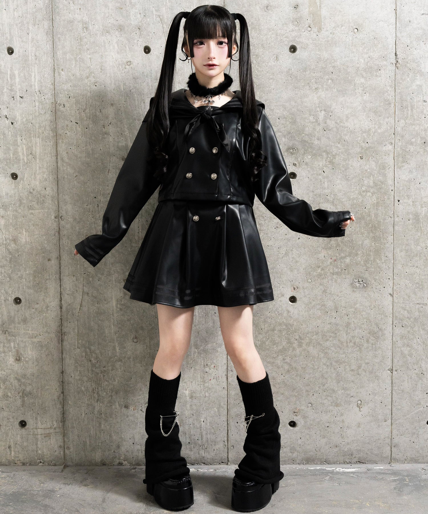 大人気のセーラーカラーセットアップがPUレザーの生地で登場。