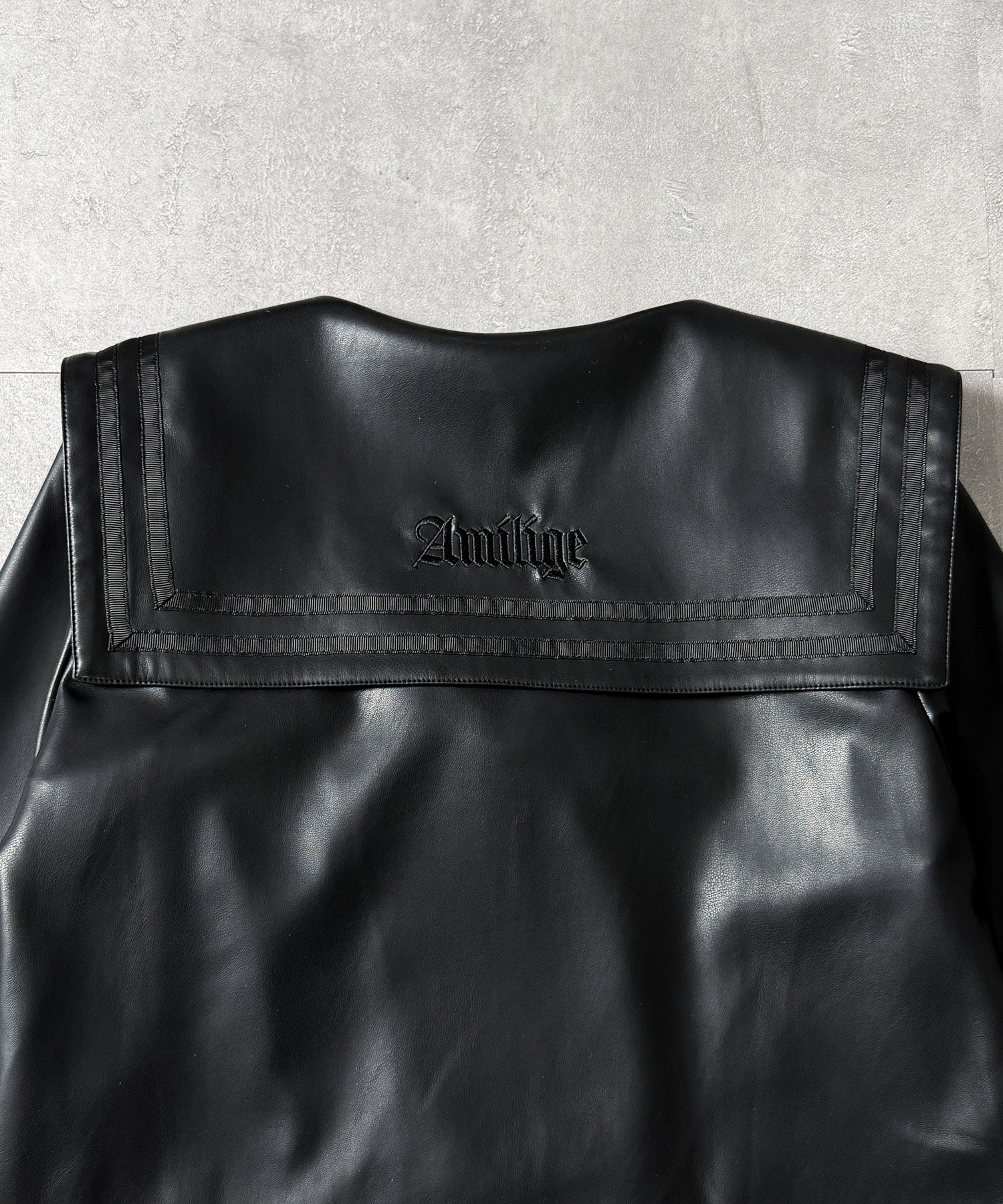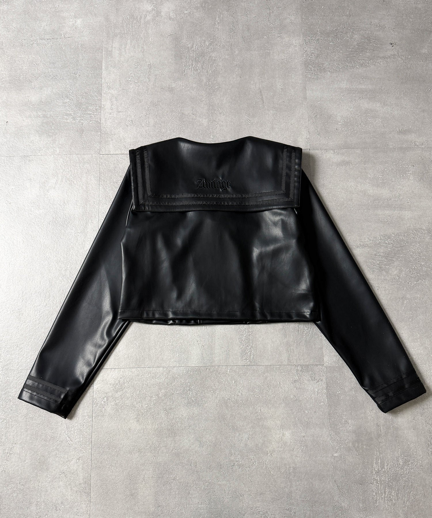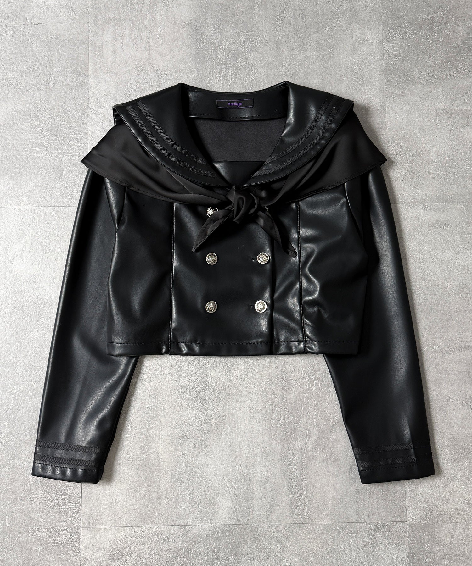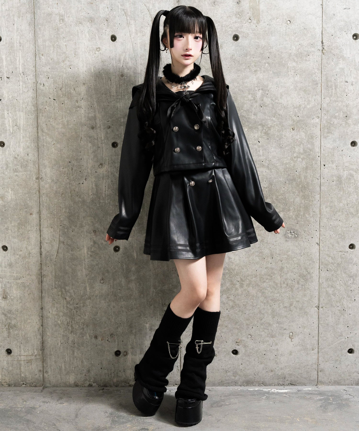 大人気のセーラーカラーセットアップがPUレザーの生地で登場。