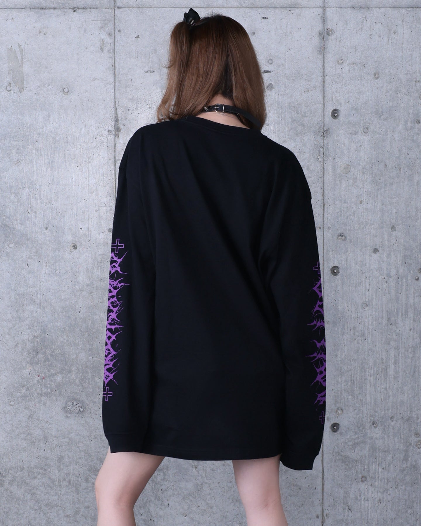 袖と胸元にはゴシック調のトライバル風ロゴを
