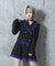 Amiligeオリジナルの病みかわいい学園風デザインのエンブレムワッペン付きレースジャケット ボックスプリーツスカートセット。