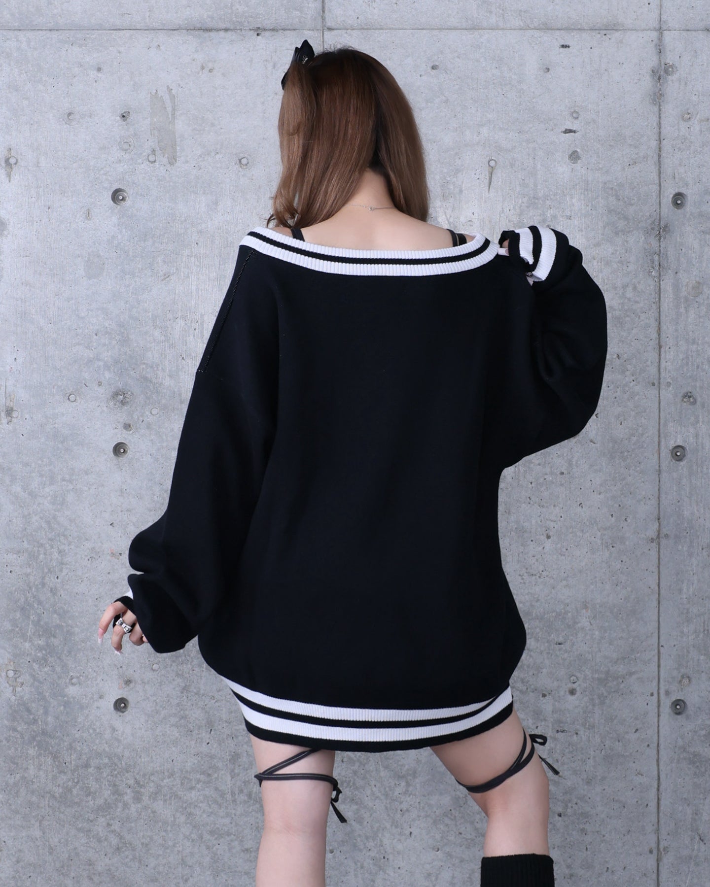 衿リブ袖リブ裾リブの太ラインのアクセントカラーが