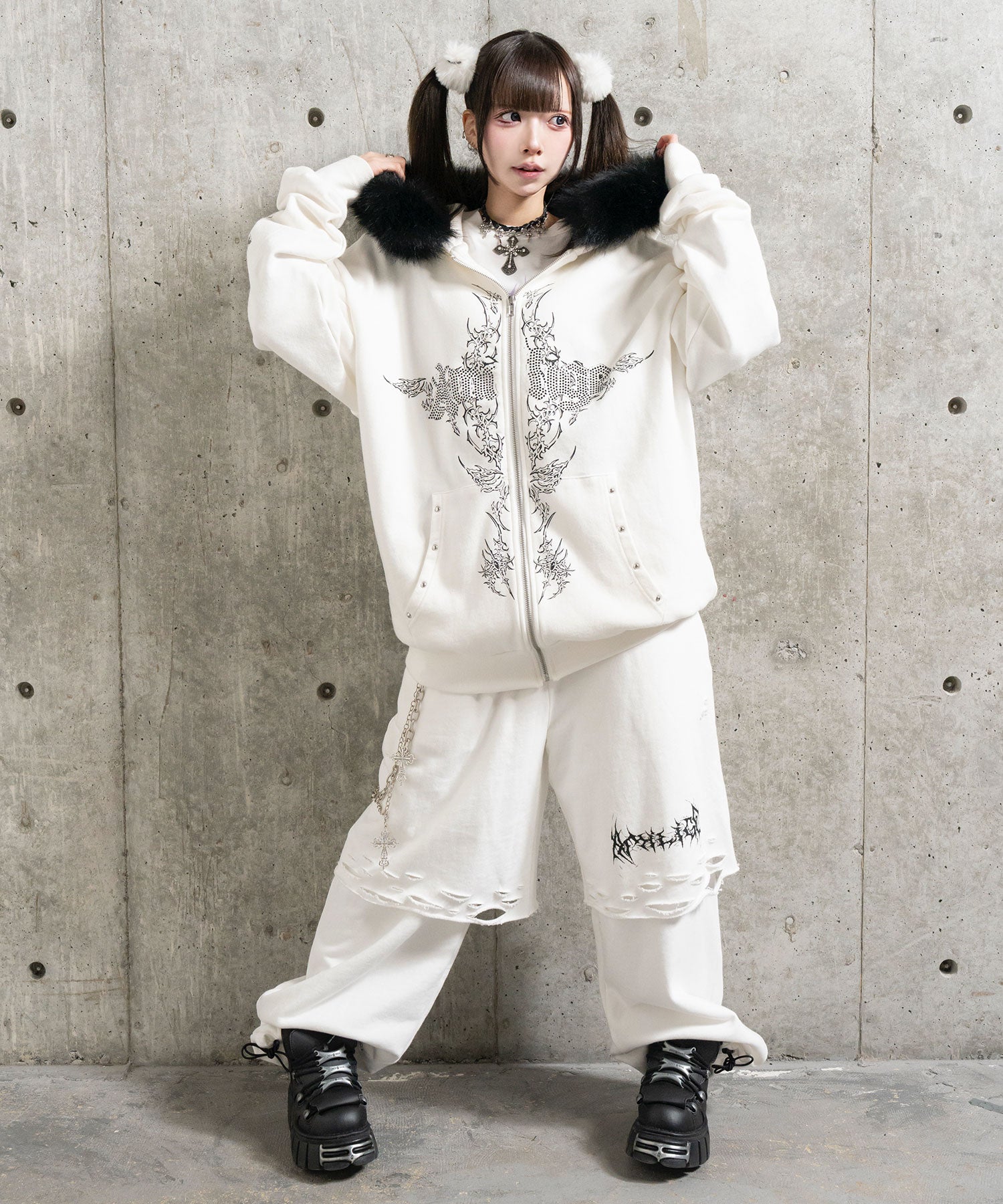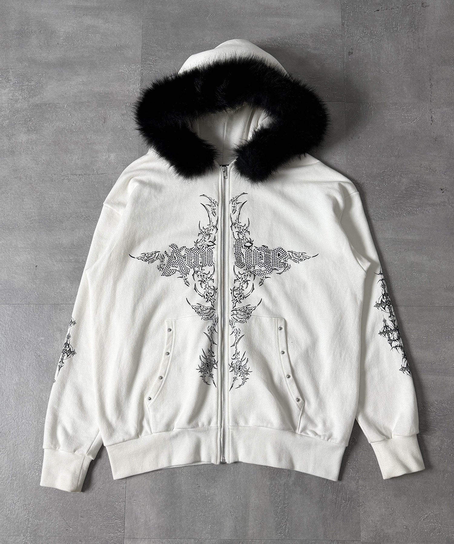 ファー付きAmiligeラインストーンZIPパーカー– A AM STUDIO