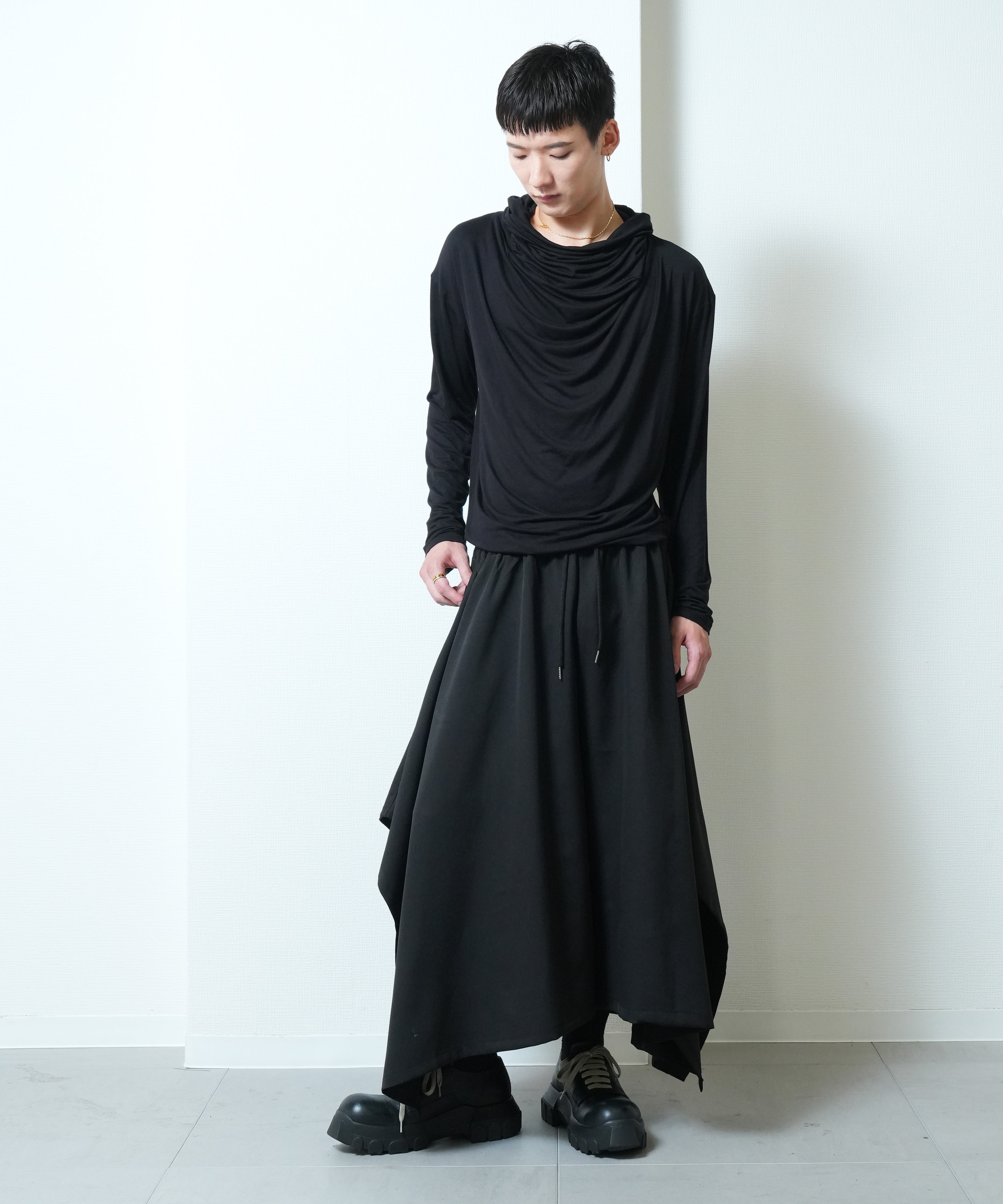 贅沢な分量の布が織りなす、流れるような美しいドレープは動きに合わせてエレガントな余韻を残します。