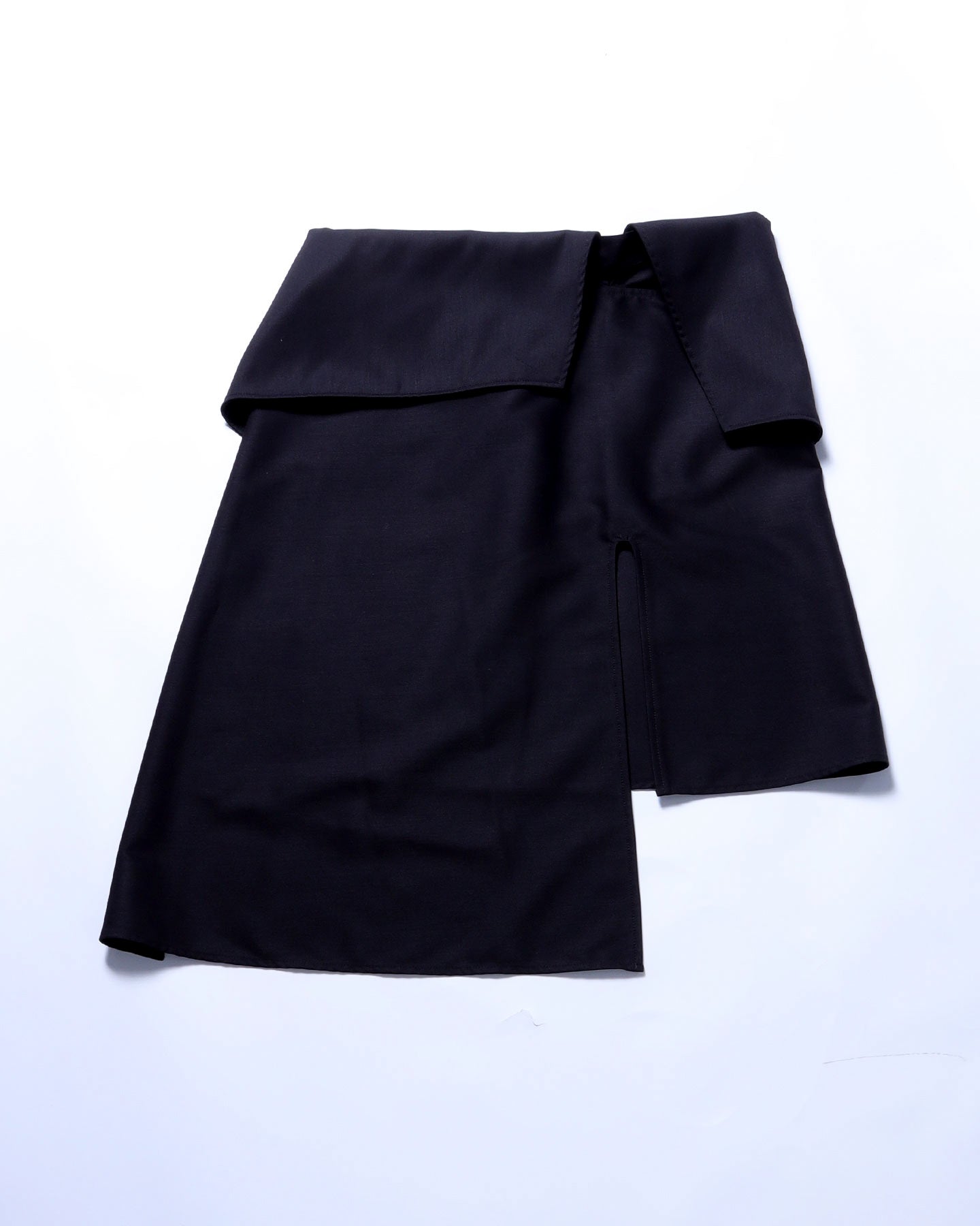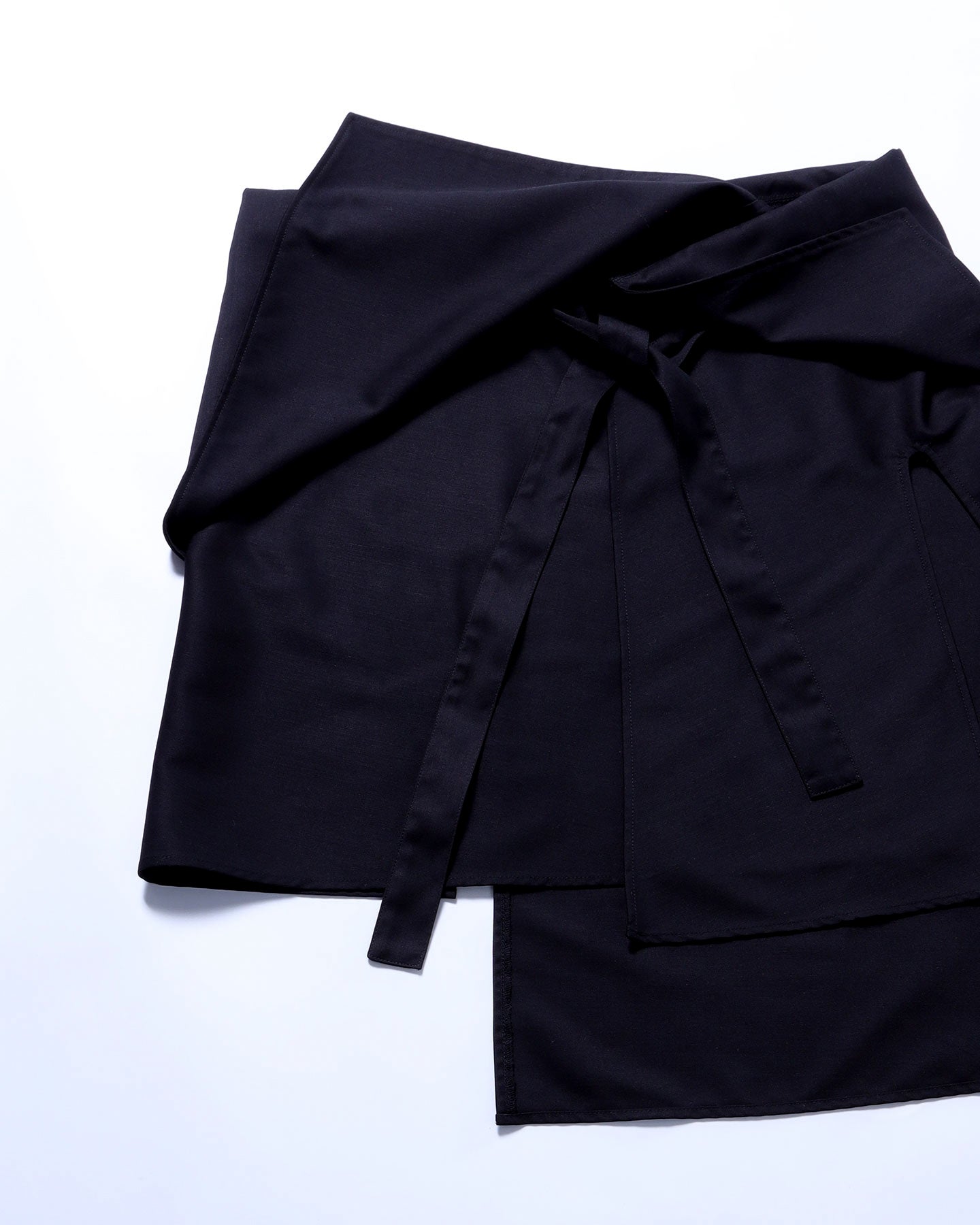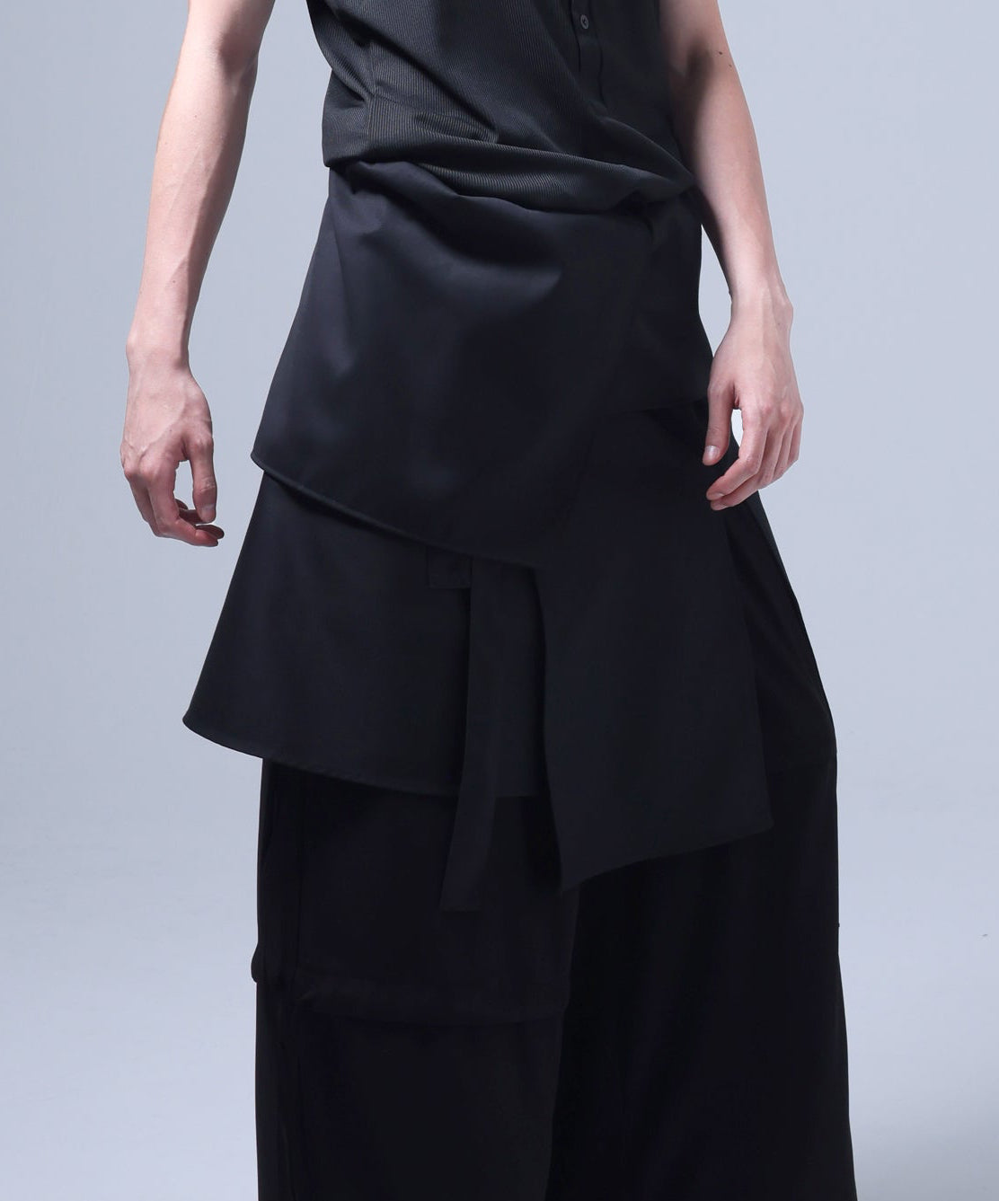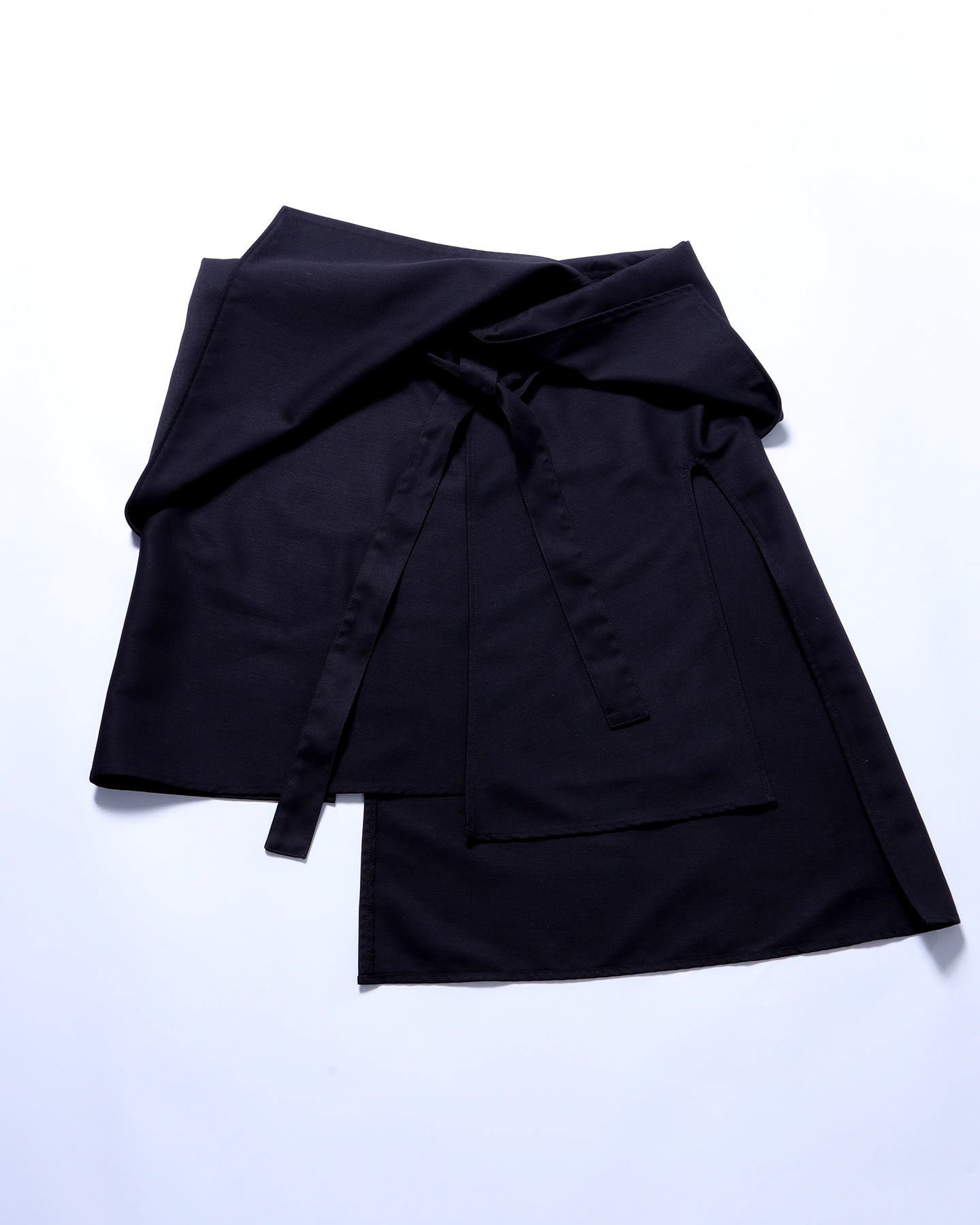 ジェンダーレスに着用できるアシンメトリーラップスカート。
