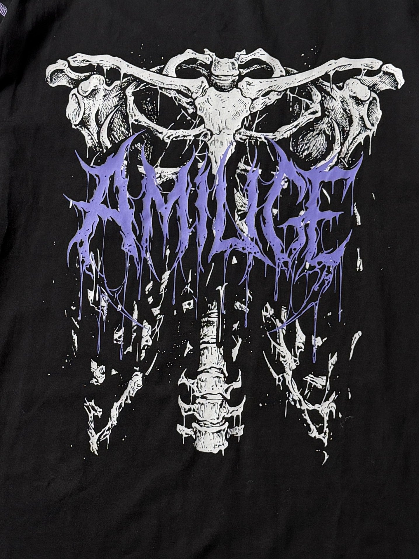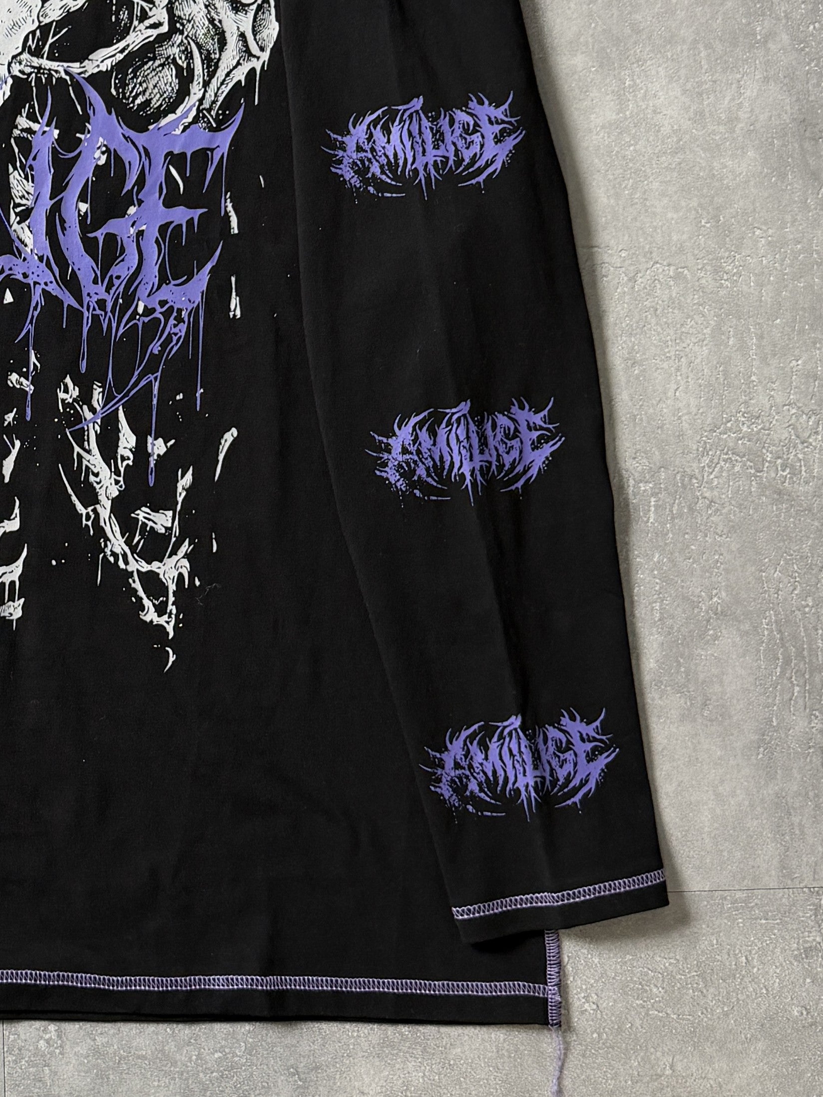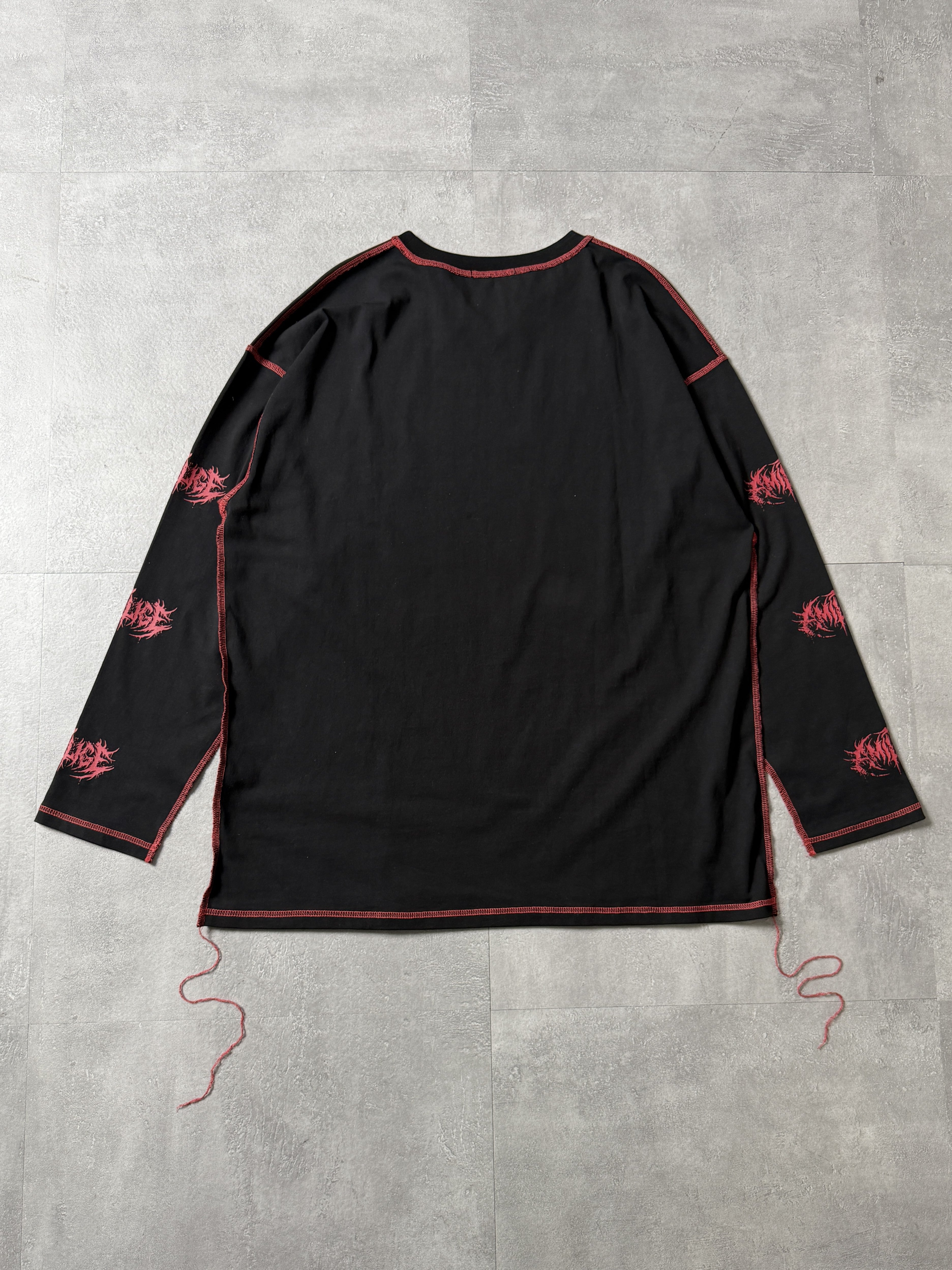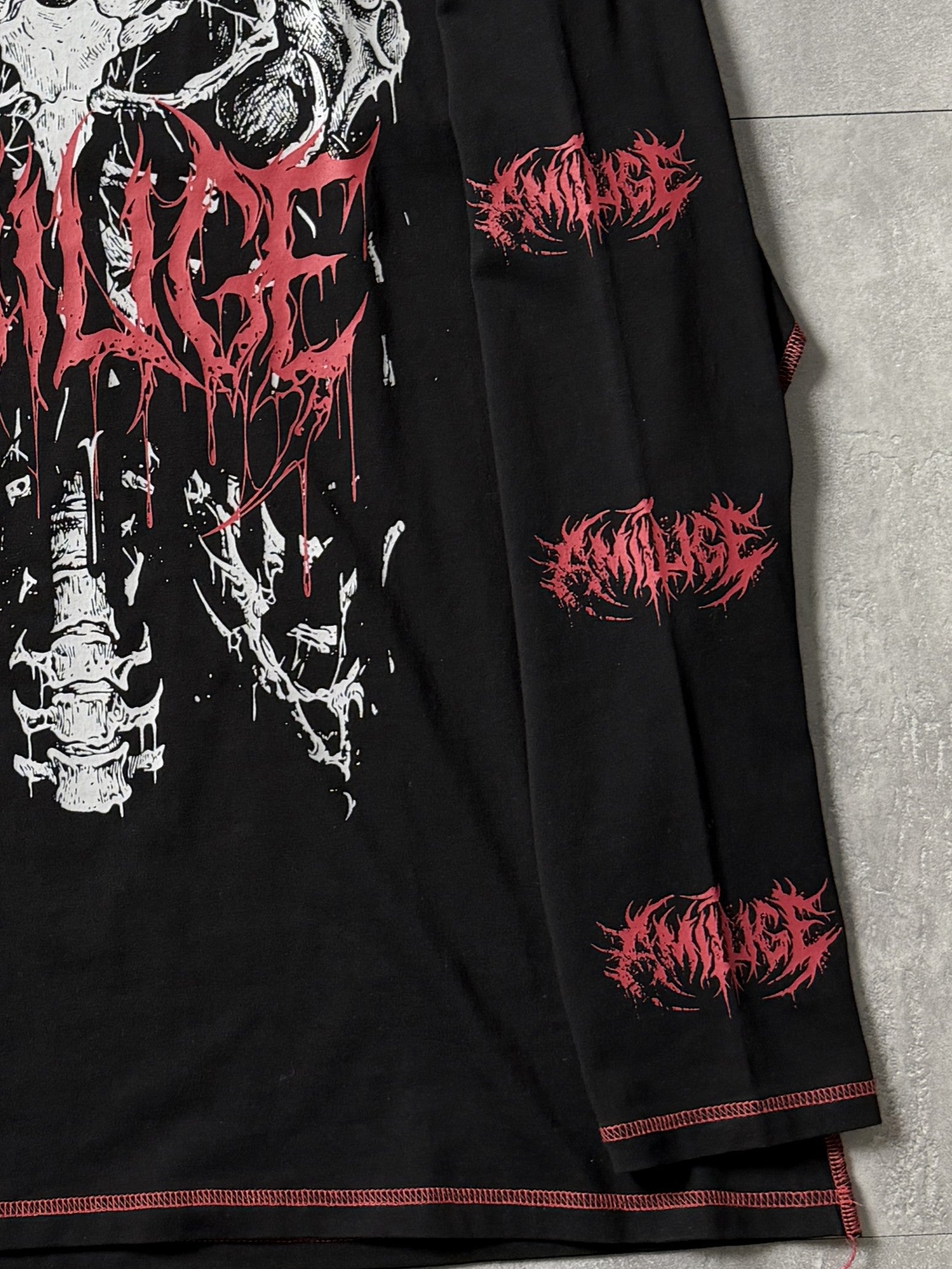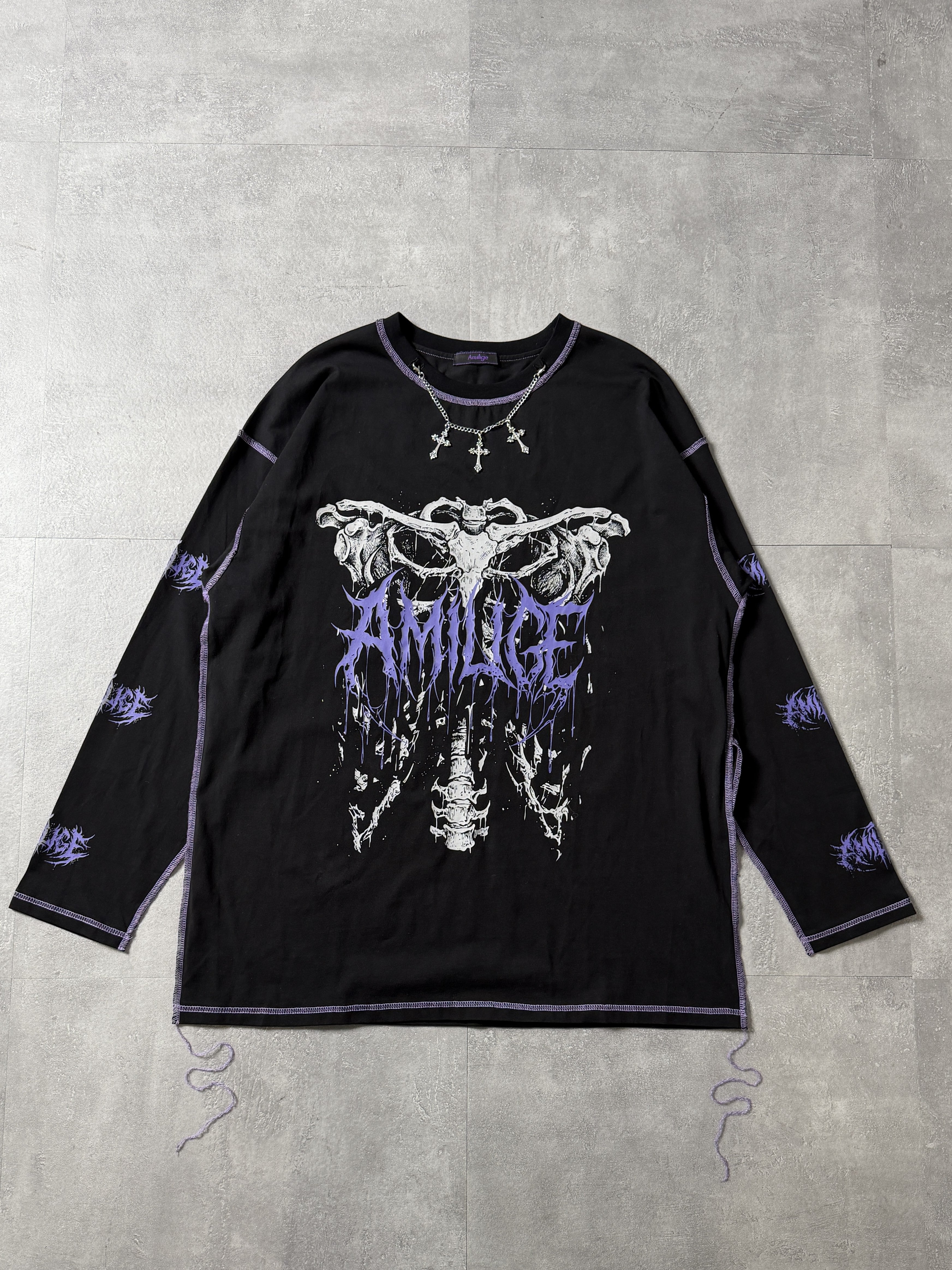 フロントの骨×袖ロゴプリントで強いビジュアルを演出