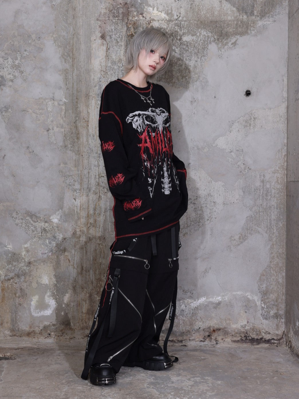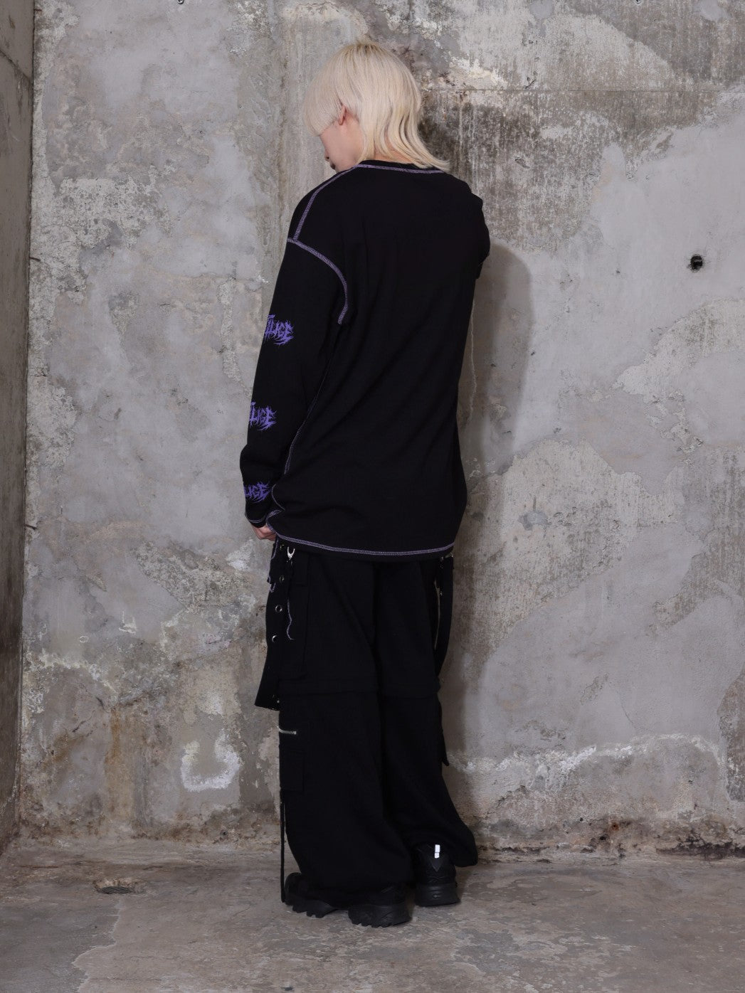 トリプルファスナーワイドパンツ合わせでダークストリートに