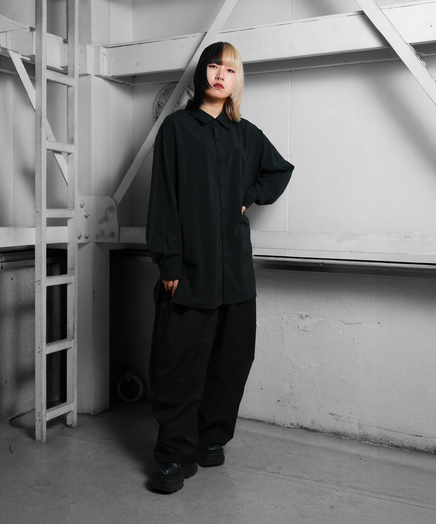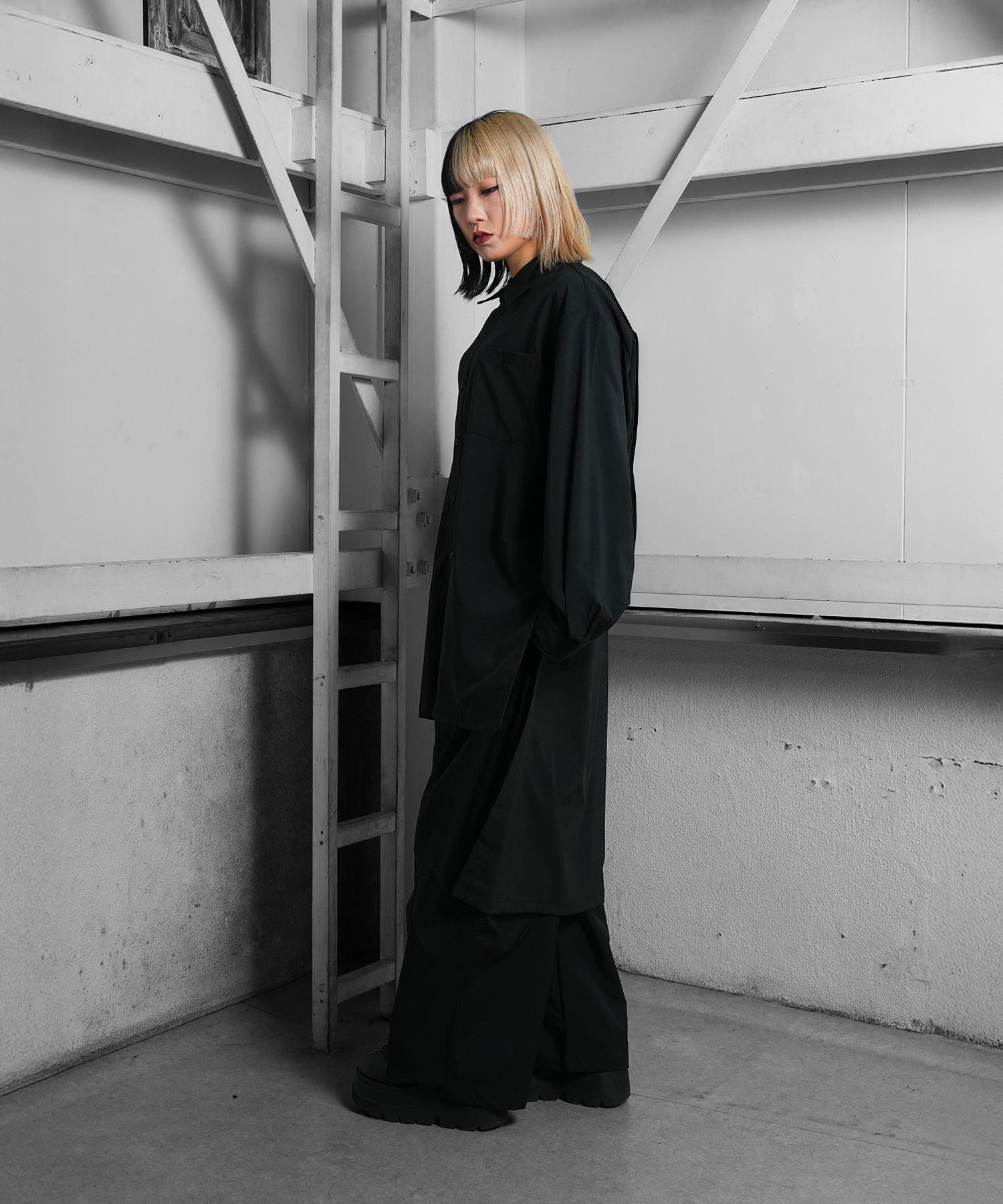 モードな装いに限らず現代的にカジュアルなスタイリングにも合わせやすい一着。