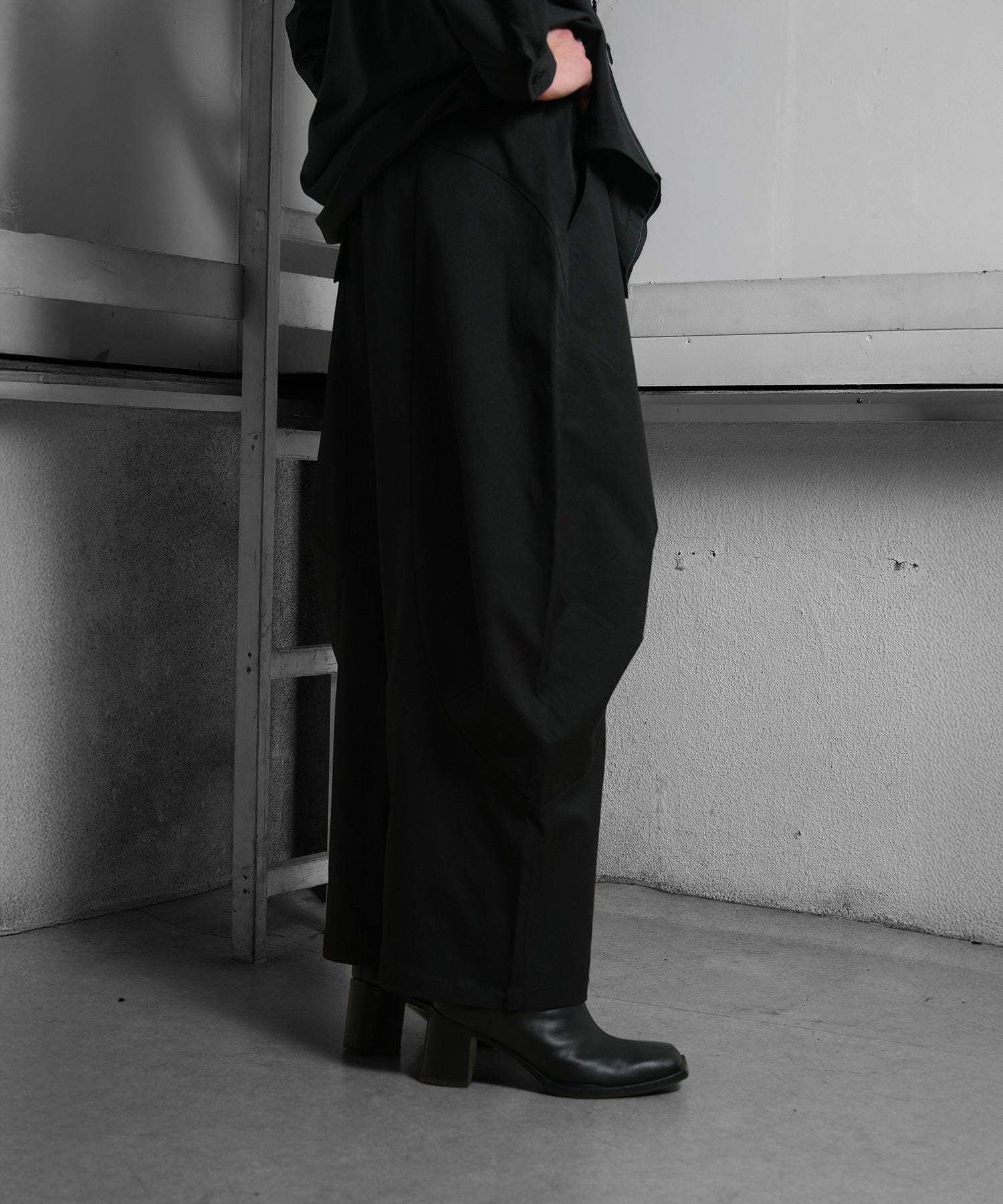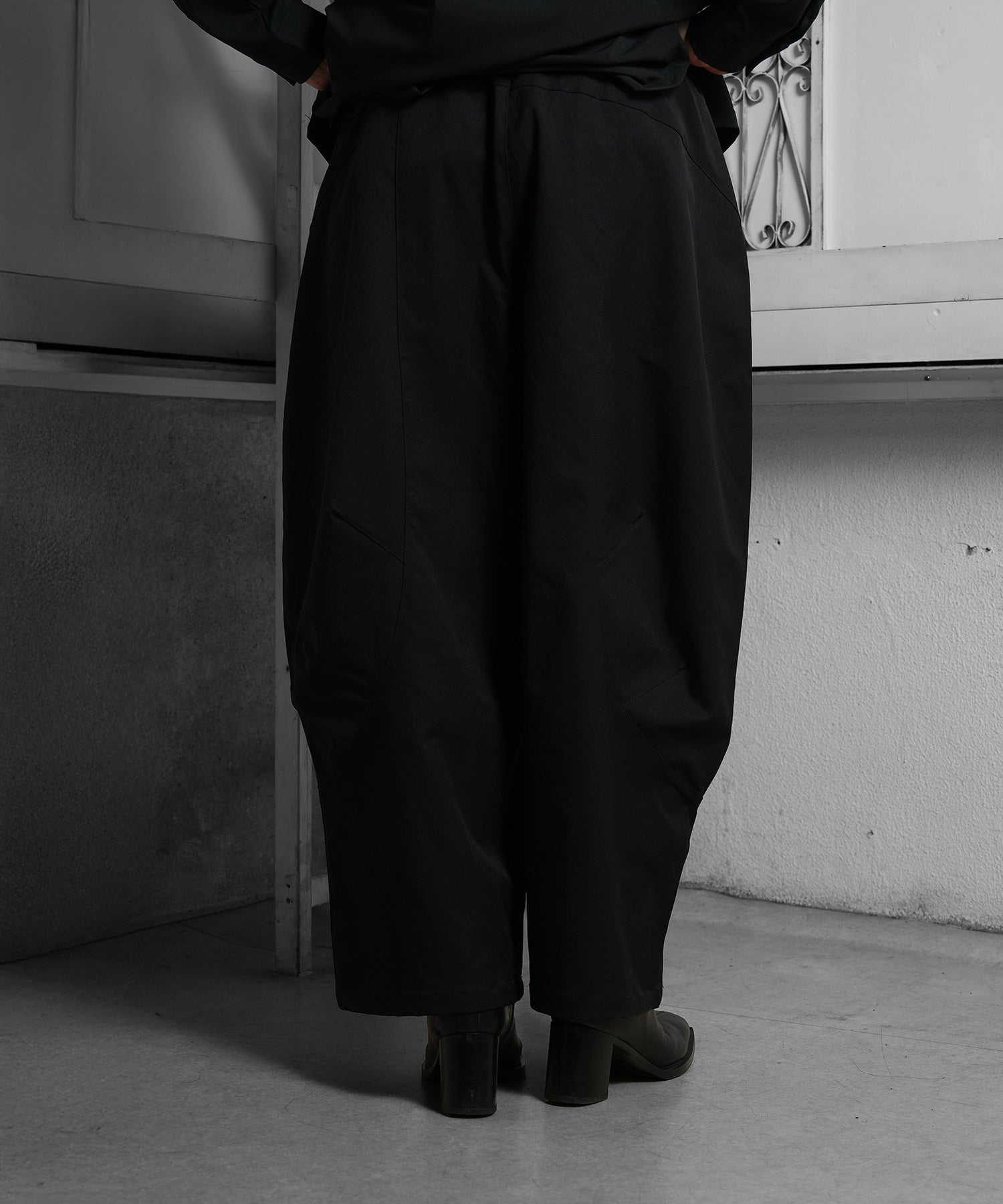曲線のパターンがつくり出すカーブシルエットのパンツ。