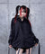 袖部分に多数のシルバーリングをあしらい、これ一枚でクールなスタイリングが完成します。襟先にはハトメデザインを採用。付属のチェーンは取り外し可能で、お好みの場所に付け替えることができます。比較的シワになりにくい生地を使用しており、お手入れのしやすさも魅力です。オーバーサイズシルエットで、リラックスした着心地。