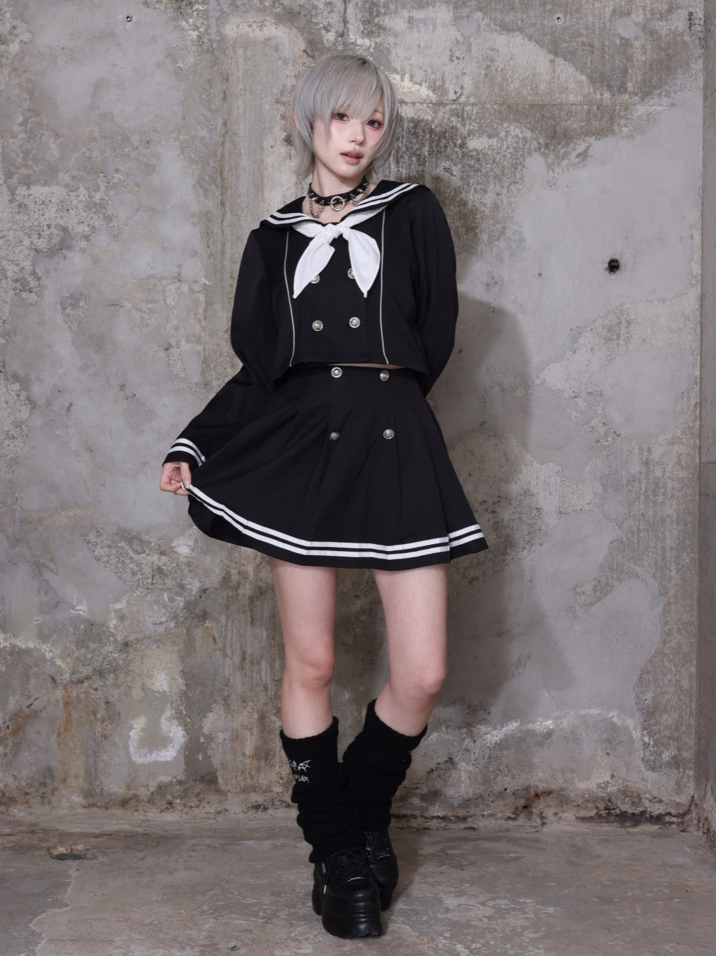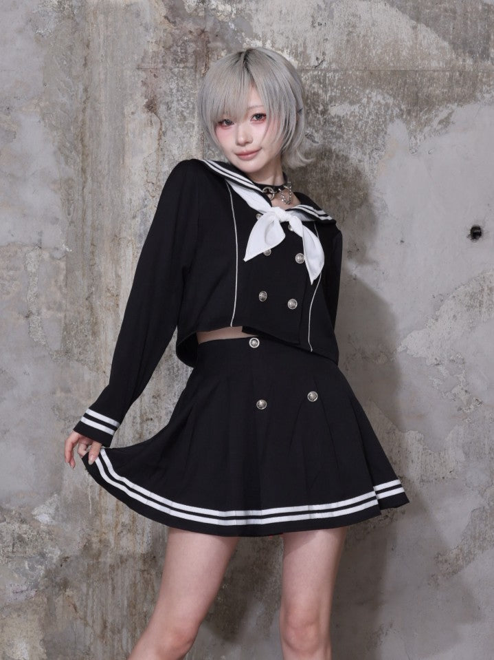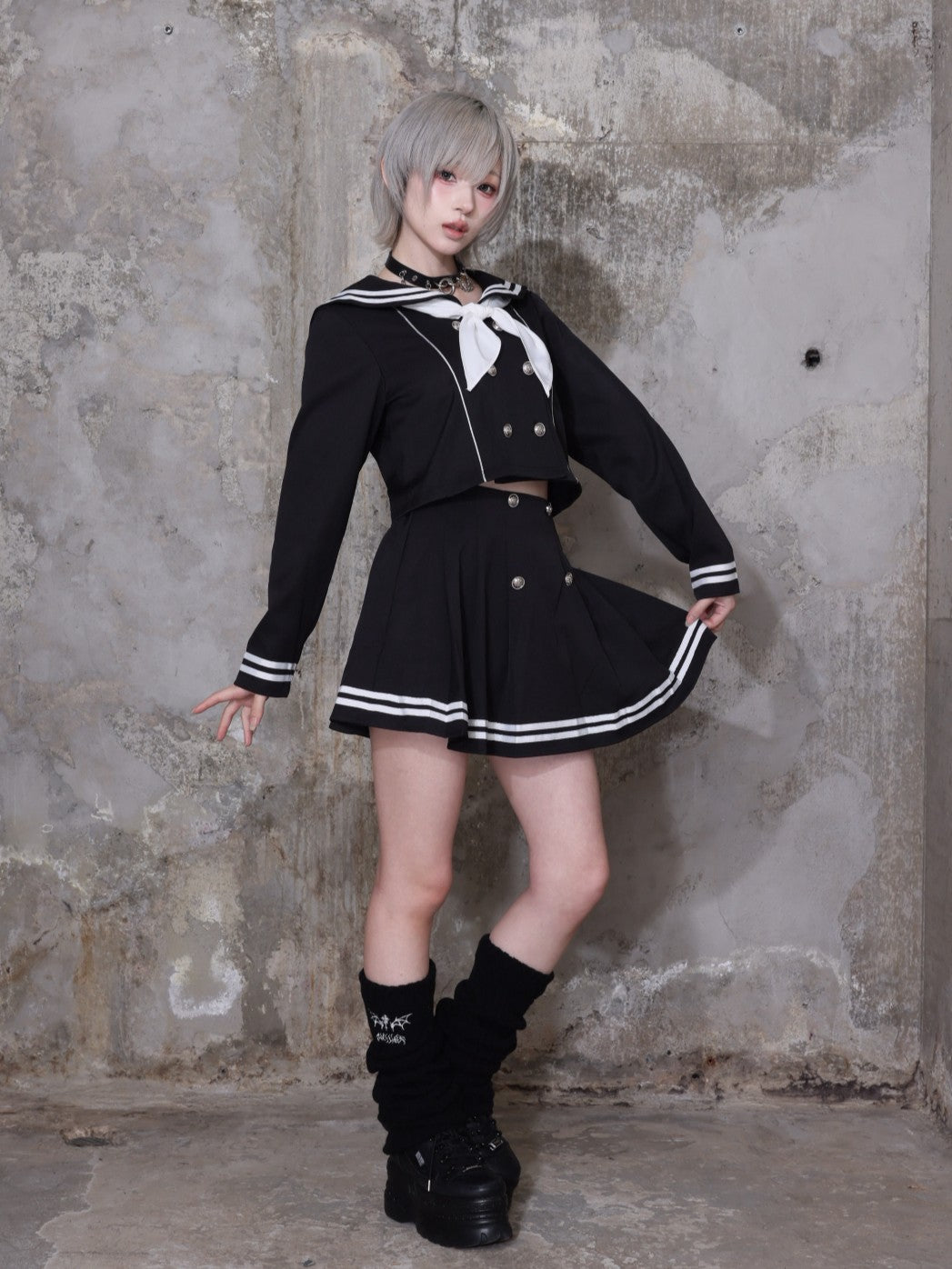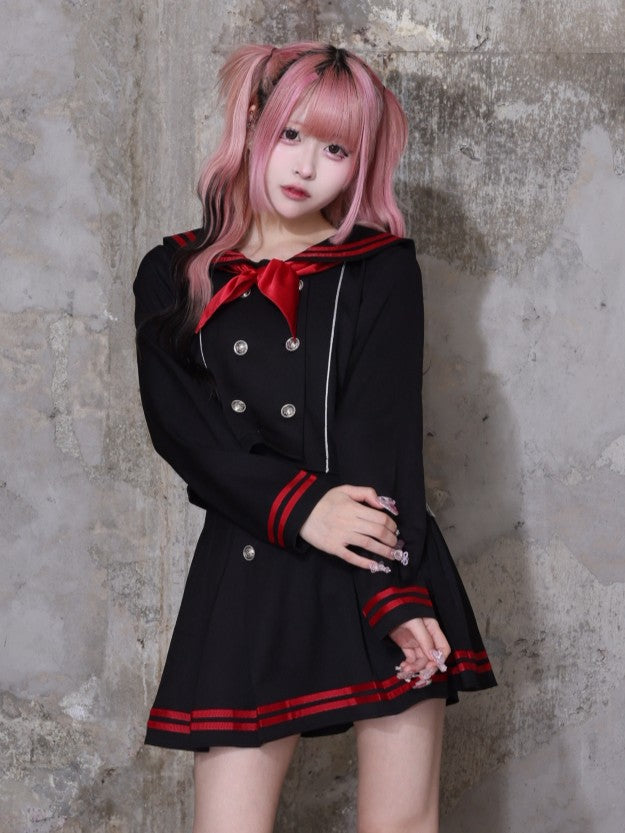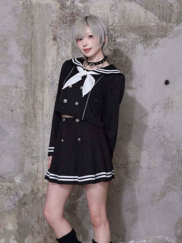 大人気セーラーカラーセットアップにブラック×ピンク、グレー×ブラック、ホワイト×ピンクが新色として加わって登場。